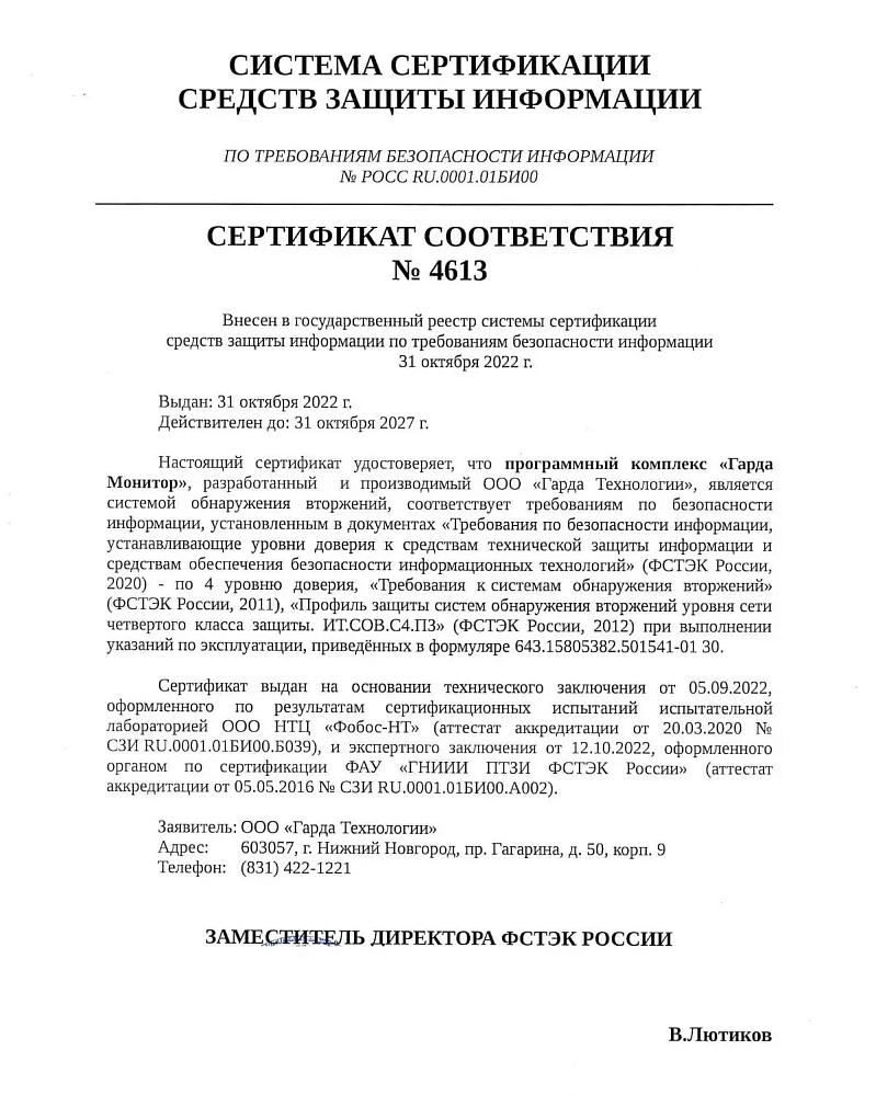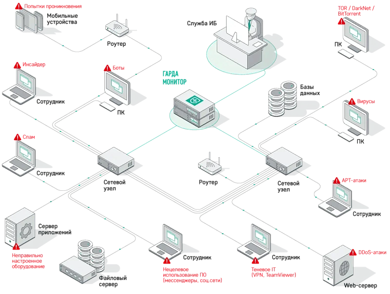 Гарда Монитор- система класса NTA (Network Traffic Analysis) для выявления угроз и расследования сетевых инцидентов, анализа трафика, обнаружения атак на периметре и внутри сети.
