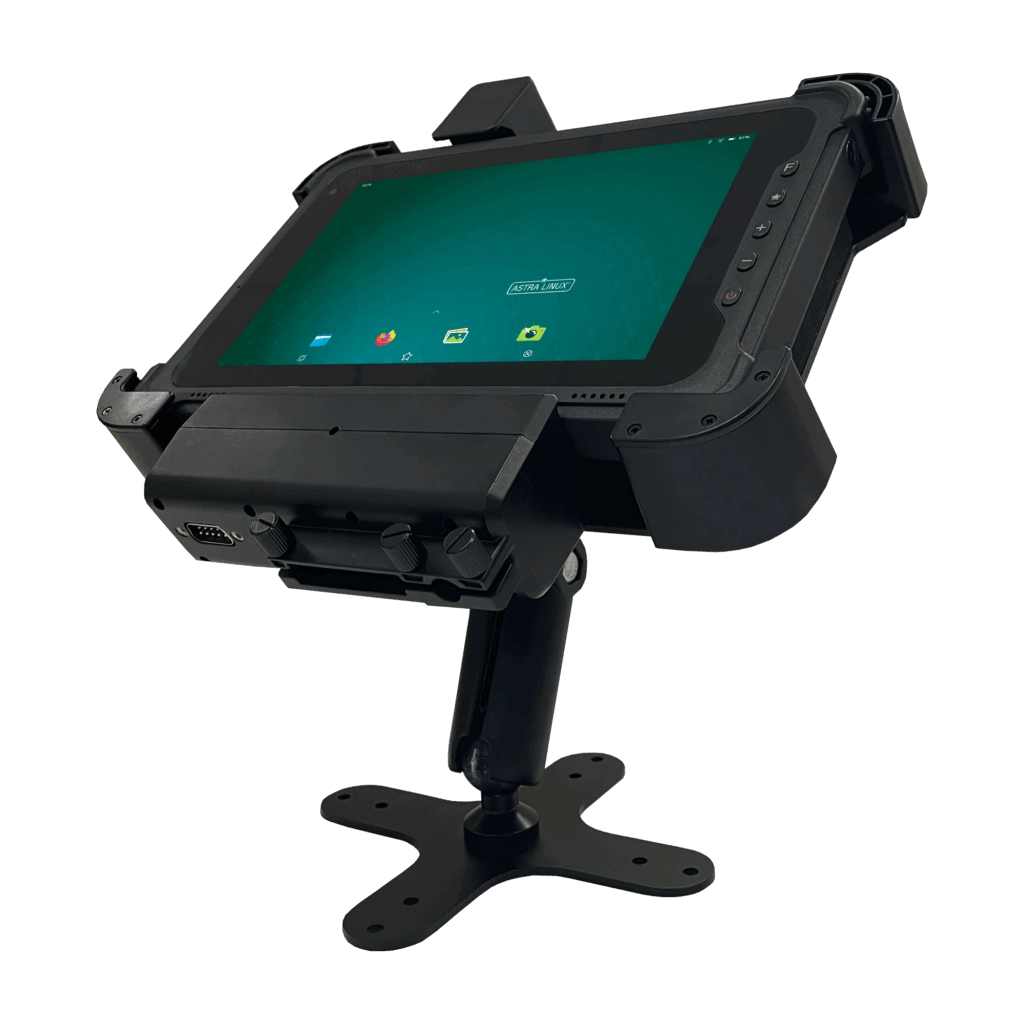 Бортовой компьютер MIG T8X х86 с системой крепления и питания от техники — российский компьютер, который удобно монтировать в складскую технику или другие транспортные средства. С помощью специализированного кредла устройство подключается напрямую к сети питания, а за счет широкого многообразия встроенных интерфейсов позволяет легко подключать привычную периферию (сканер штрих-кода, принтер, клавиатура и т.д.).