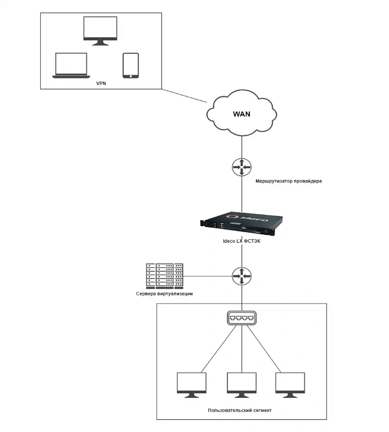 В рамках проекта было необходимо обеспечить безопасность корпоративной сети путем внедрения межсетевого экрана нового поколения Ideco UTM, с целью защиты периметра от внешних угроз, контроля и фильтрации трафика, сегментации сети для минимизации рисков атак, доступа по VPN для удалённых сотрудников и соответствия требованиям регуляторов в области защиты информации и импортозамещения.